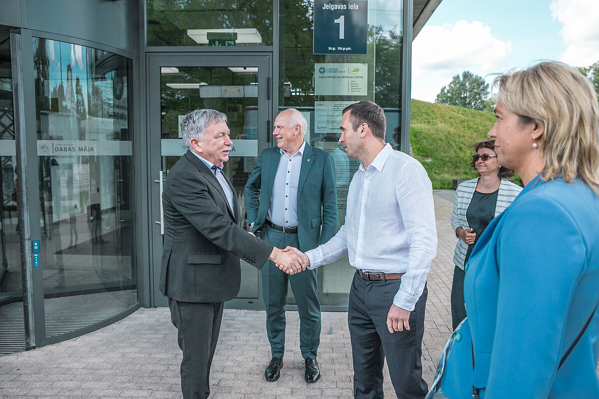 Mārtiņa Staķa vizītes laikā LU Akadēmiskajā centrā 2021. gada augustā.