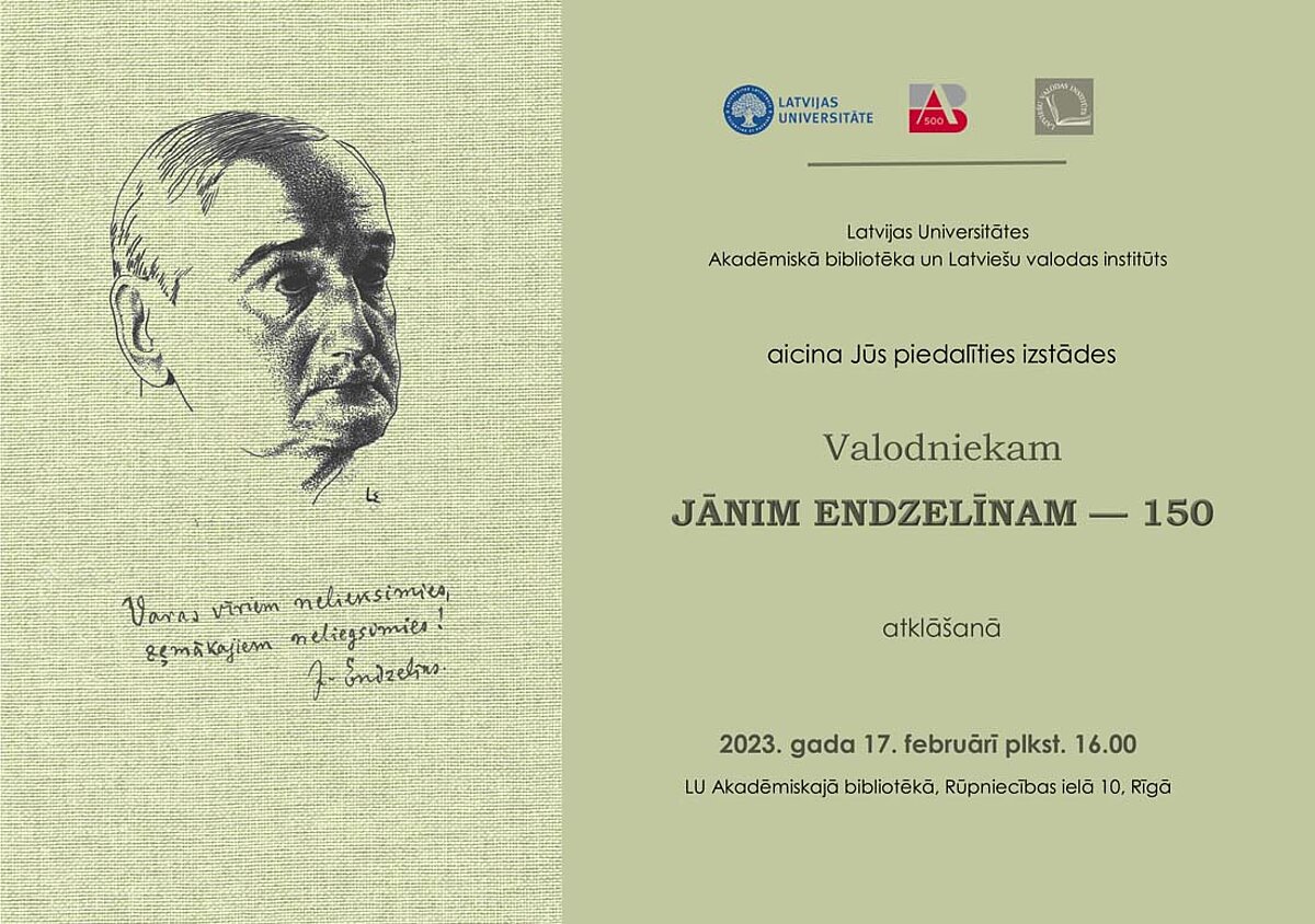 2023. gada 17. februārī plkst. 16.00 Latvijas Universitātes Akadēmiskajā bibliotēkā (Rīgā, Rūpniecības ielā 10) tiks atklāta izstāde “Valodniekam Jānim Endzelīna – 150”.